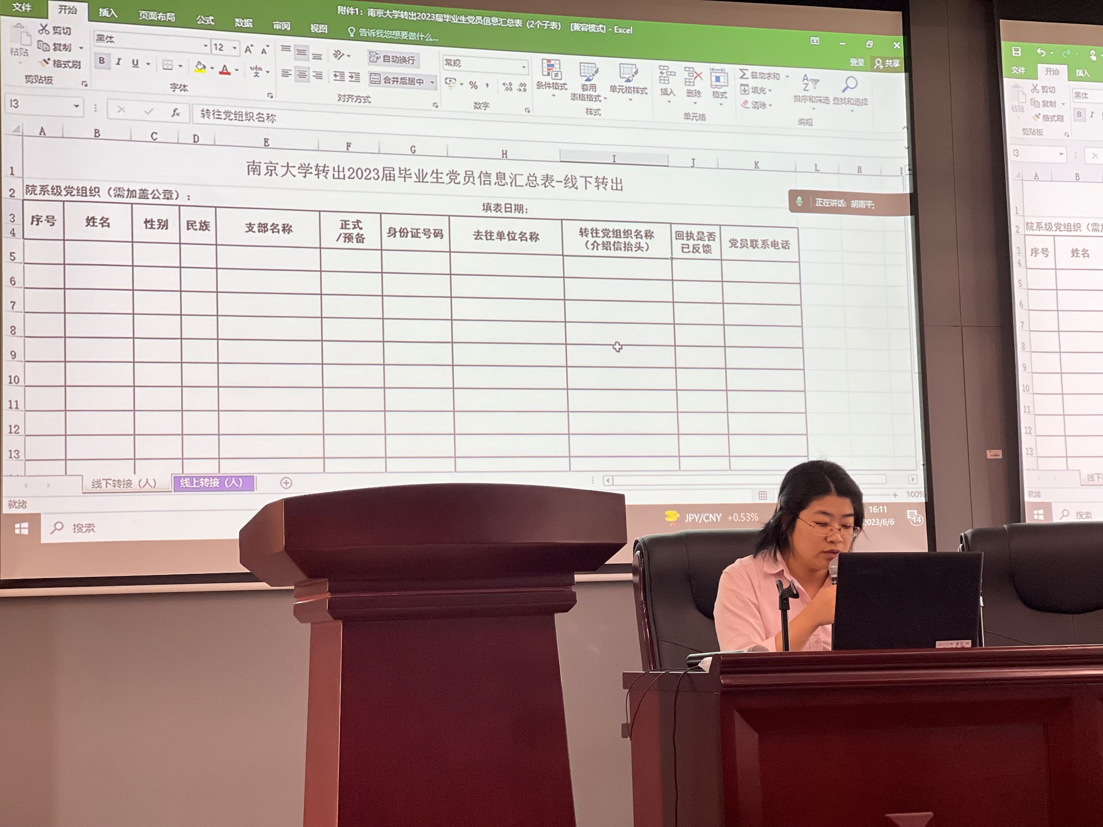 会议最后,国产直播 党委秘书孔琴琴老师向同学们介绍了党组织关系的转接事项,孔老师提醒各支部毕业生党员要按时填写毕业生党员信息汇总表,重点留意表格中“去往单位名称”“转往党组织名称”两项内容。预备党员一定要及时做好组织关系转接工作,保证考察期不中断,及时提交思想汇报,以顺利完成转正工作。