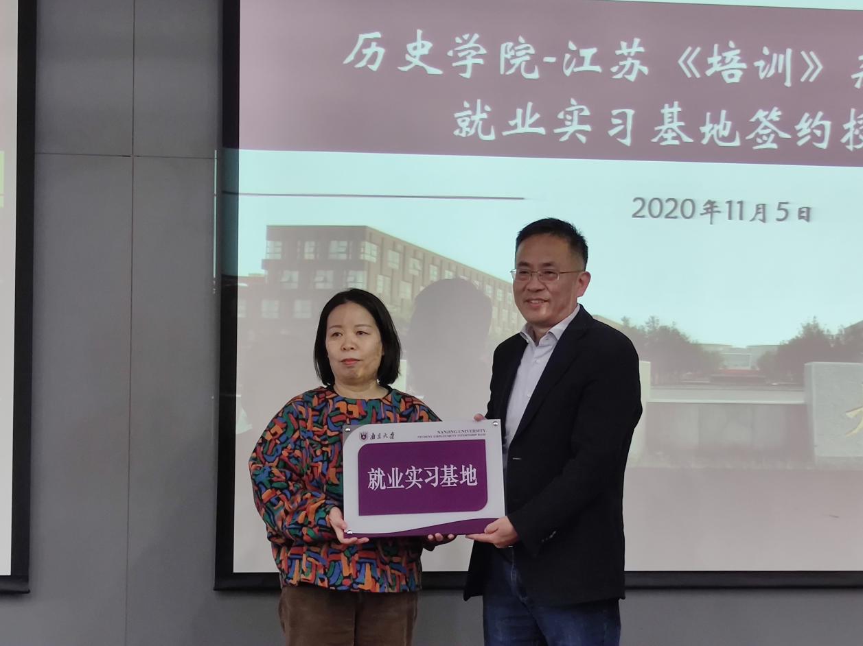 接下来,国产直播 党委副书记任玲玲与《培训》杂志主编朱伟正校友签约并进行就业实习基地授牌仪式。