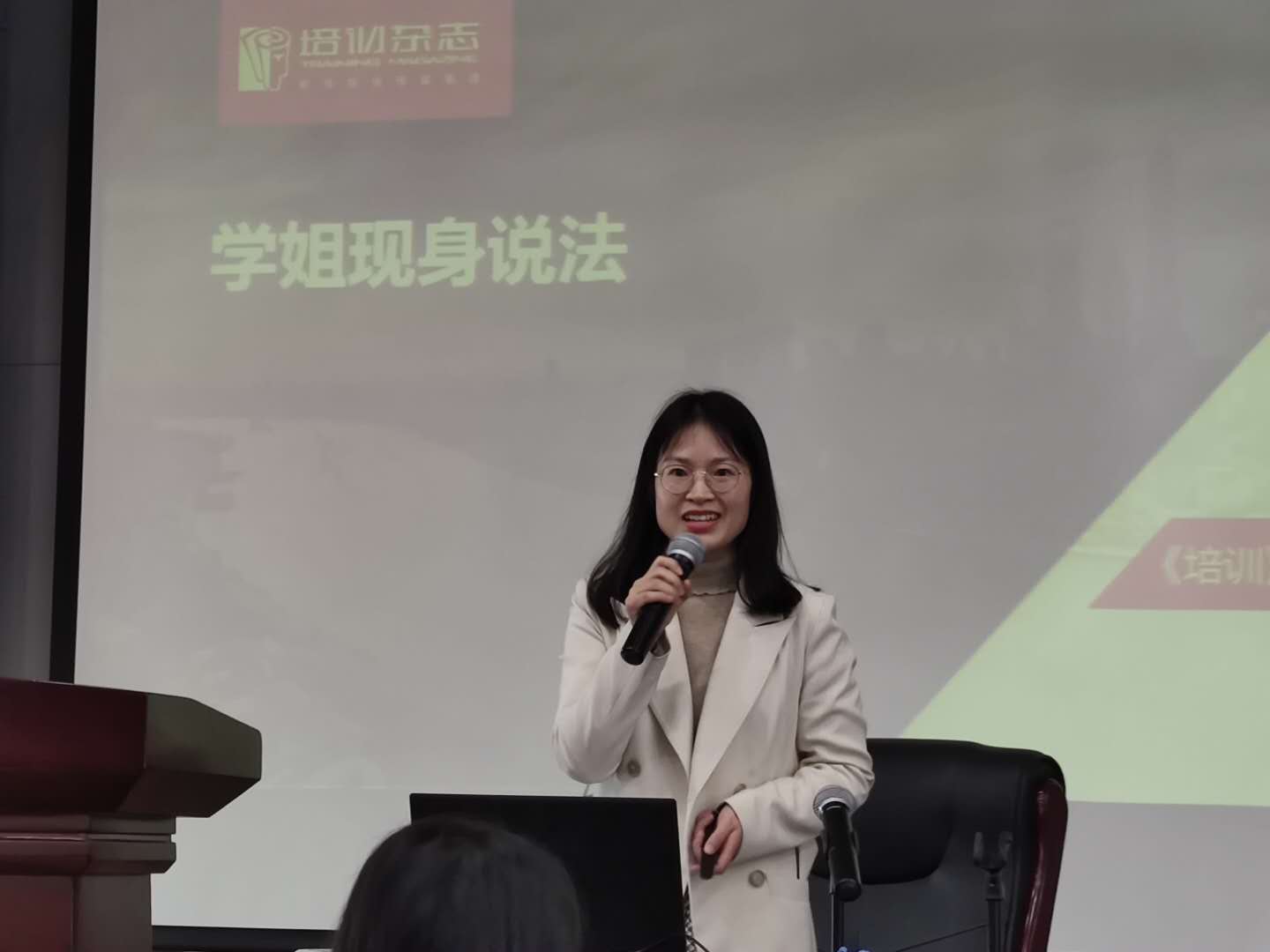 随后,《培训》杂志全媒体中心副总监孙思进一步介绍了公司情况,并邀请国产直播 同学加入。同时,《培训》杂志app产品研发负责人陈文君以国产直播 2013届校友的身份,现身说法,向在场同学分享了自己的择业经历和职场发展经验。陈文君学姐表示,策划思维、产品思维与行业深耕是自己职业发展的心得。