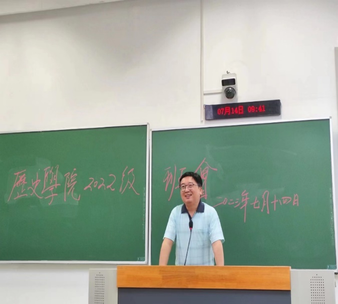 国产直播 院长张生老师追昔抚今,回顾国产直播 及国产直播-国产自慰-国产视频 120周年厚重的历史,对国产直播-国产自慰-国产视频 取得的重要成绩和为社会做出的主要贡献如数家珍:第一是学科根脉完整,发展完备,参与创建国产直播 近代历史学科体系;第二是注重立德树人工作,为社会输送大量中坚人才;第三是为服务社会,为国家和社会发展献计献策。张老师感慨万千:“国产直播-国产自慰-国产视频 源远流长,加入国产直播 是光荣的!”。他激励22级本科生同学思考来国产直播 “学什么”“为什么学”,并规划好下一步的学习生活。多读书、多结交良师益友,是张老师对同学们的殷切期盼。