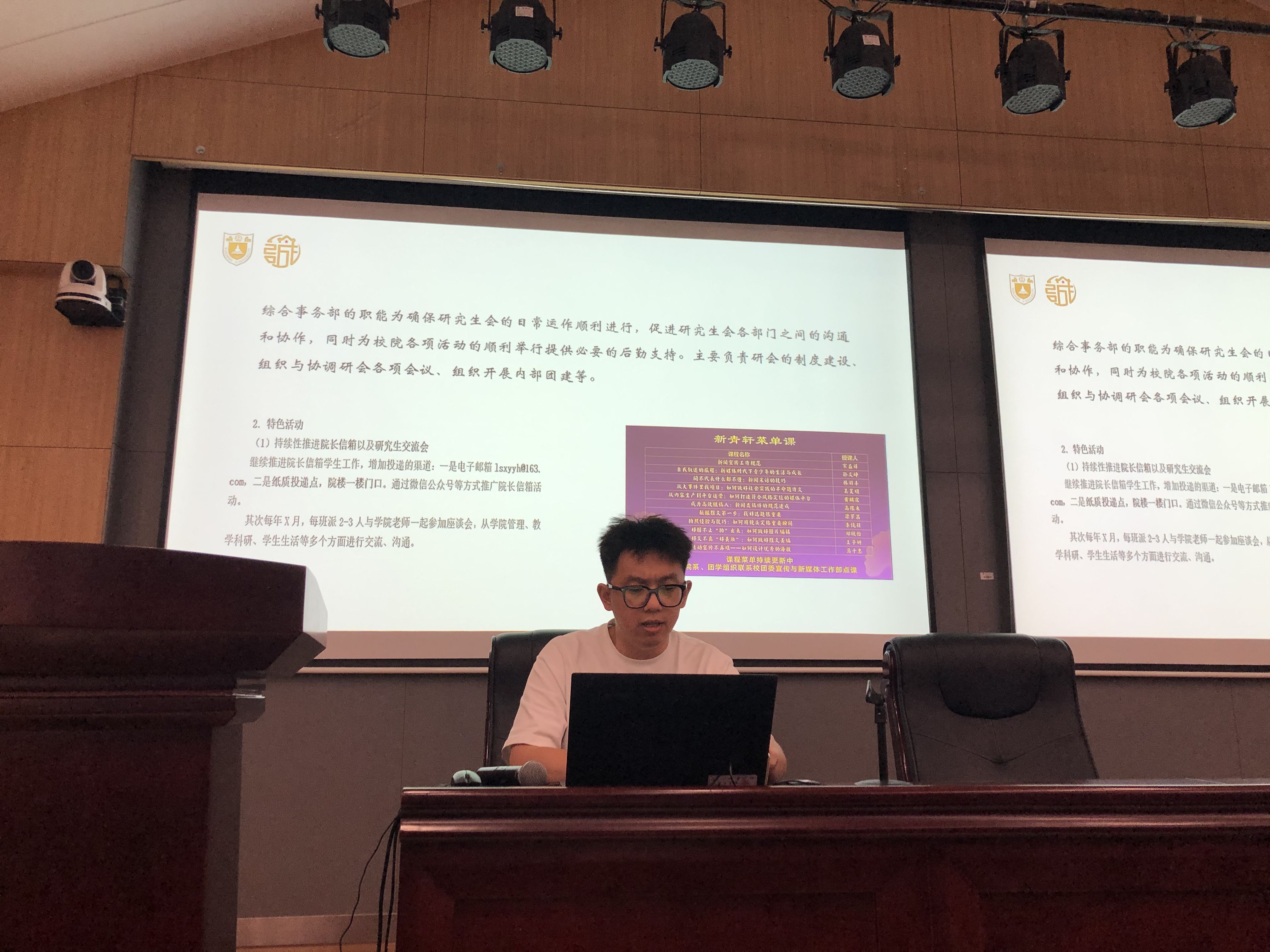 会议伊始,主席团成员郭健音对新同学的加入表示热烈欢迎,其次围绕研会的组织架构、主席团分工及各个部门的工作主线进行介绍,并建议部员们积极参与研会举办的各项活动与培训。