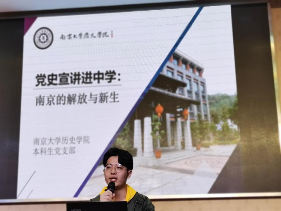 2021年4月7日,作为此次系列活动重要内容的“党史宣讲进中学”首场主题活动走进了南京市浦口区实验学校,为青少年讲述党史和国史,传承红色基因,培植爱国情怀。